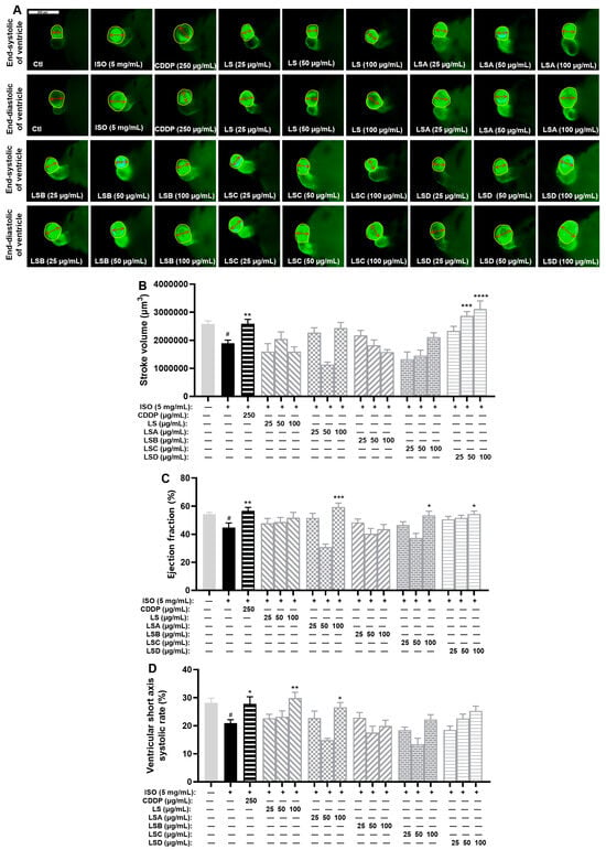 - Kossack, M.; Hein, S.; Juergensen, L.; Siragusa, M.; Benz, A.; Katus, H.A.; Most, P.; Hassel, D. Induction of cardiac dysfunction in developing and adult zebrafish by chronic isoproterenol stimulation. J. Mol. Cell. Cardiol. 2017, 108, 95–105. [Google Scholar] [CrossRef] [PubMed]