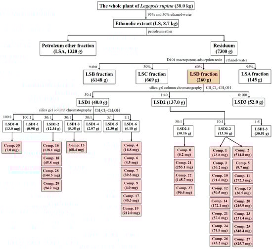 - Niu, C.; Yang, L.P.; Zhang, Z.Z.; Zhou, D.J.; Kong, J.C.; Zhai, Y.Y.; Liu, Z.Z.; Chen, X.Y.; Zhang, W.K.; Zhou, J.C.; et al. Chemical constituents of Lagopsis supina. Chem. Nat. Compd. 2022, 58, 332–336. [Google Scholar] [CrossRef]