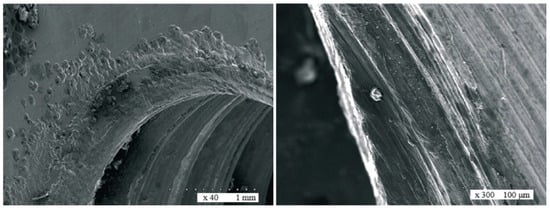 Metallosis is a phenomenon of metal particle deposition in tissues surrounding implants. An analysis of literature sources has shown that this problem was known earlier, as well as in cases of jawbone fixation [,,]. In the human body, the degradation of titanium or its alloys may occur as a result of a violation of the structural integrity of the implant due to friction (fretting) and the accompanying electrochemical corrosion process [,]. Fretting is a type of friction occurring in conditions of micro-movements of elements constituting systems stabilizing bone fragments. Fretting usually leads to the intensification of tribological wear processes, abrasion, adhesion, formation of galvanic cells, and fatigue degradation of materials from which jawbone fixations are made. In this case of bone fixations, the passive (protective) layer is damaged, and the presence of hard wear particles in the friction zone, acting as an abrasive, intensifies secondary wear [,,]. In vitro studies show that fretting corrosion in fixation plates is a primary corrosive process initiated by micro-movements in the areas of these fixations, which are intensified by the presence of a body-fluid environment [,].