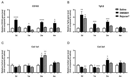 2.3. DMSB01 Increased Type 1 and 3 Collagen Expression via TGF-β Synthesis and the M2 Macrophage-Mediated Pathway