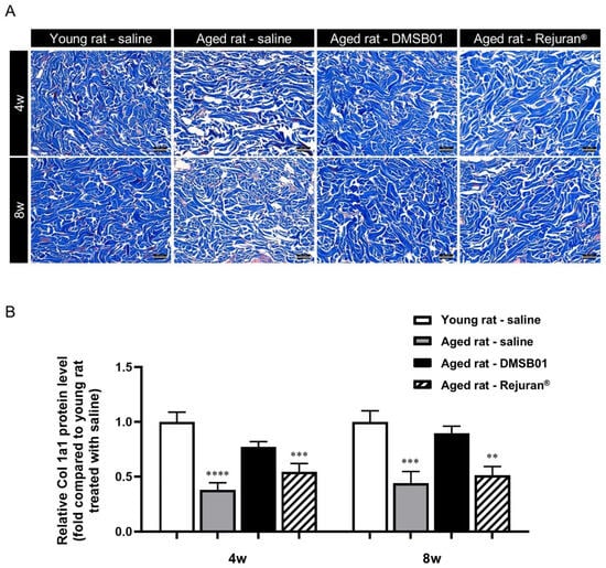 2.4. DMSB01 Enhanced the Expression of Type 1 Collagen in the Dermal Tissue of Aged Rats