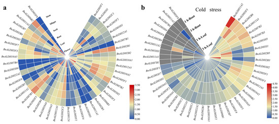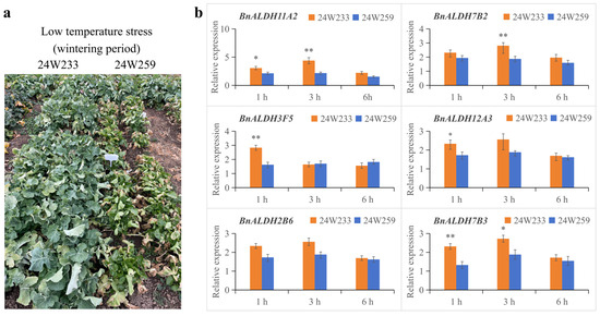 2.6. Expression Pattern of BnALDHs in Response to Cold Stress