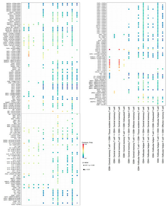The CellChat package [50] (https://github.com/sqjin/CellChat, accessed on 17 May 2024) was utilized to analyze various connection patterns among different T-cell types, enabling the construction of cellular communication networks and interaction relationships within T-cell subpopulations.