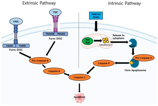 - Lossi, L. The concept of intrinsic versus extrinsic apoptosis. Biochem. J. 2022, 479, 357–384. [Google Scholar] [CrossRef]