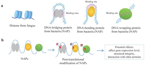 - Dilweg, I.W.; Dame, R.T. Post-translational modification of nucleoid-associated proteins: An extra layer of functional modulation in bacteria? Biochem. Soc. Trans. 2018, 46, 1381–1392. [Google Scholar] [CrossRef]
