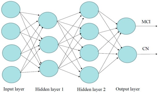 In analyzing the association between the biomarkers and MCI and AD, machine learning (ML) methods show promise to translate univariate biomarker findings into clinically useful multivariate decision support systems. Several ML technologies have been used to enhance the diagnosis and prognosis of AD, such as logistic regression (LR), naive Bayes (NB), random forest (RF), decision trees (DT), k-nearest neighbor (KNN), gradient boosting machine (GBM), extreme gradient boosting (XGBoost), and support vector machines (SVM) [,,,,,,,,,]. In recent years, deep learning (DL) techniques have become increasingly popular in AD research, such as early diagnosis. For example, deep neural networks (DNNs), stacked autoencoder (SAE) neural networks, and convolutional neural networks (CNNs) [,,,] have been reported to be more accurate for AD diagnosis than conventional ML models [,,,,,]. However, DL-based studies in this field are still in their early stages, and further studies should incorporate different information sources [].