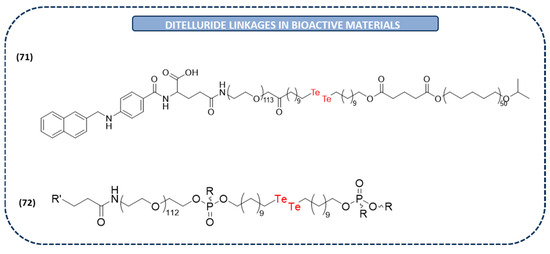 In this regard, the main purpose of this review is to collect the most recent studies conducted in recent years on bioactive molecules that incorporate the diselenide or ditelluride bond in their structure. The disulfide bond is excluded from this review since it has been widely studied. Thus, this review includes bioactive diselenides and ditellurides in the form of small molecules and in the form of more complex materials such as nanoparticles.