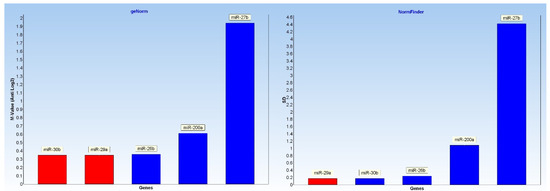 For the selection of endogenous miRNAs suitable for normalization of gene expression profiles, a preliminary stability evaluation was performed on 5 different micro RNA (bta-miR-29a, bta-miR-200a, bta-miR-26b, bta-miR-27b-3p, and bta-miR-30b-5p) previously described by Rahman et al., 2023 [47], using geNorm [48] and NormFinder [49] programs embedded in GenEx 6.1 software (MultiID, Gothenburg, Sweden).