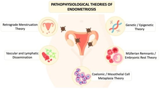 - Lamceva, J.; Uljanovs, R.; Strumfa, I. The Main Theories on the Pathogenesis of Endometriosis. Int. J. Mol. Sci. 2023, 24, 4254. [Google Scholar] [CrossRef] [PubMed]