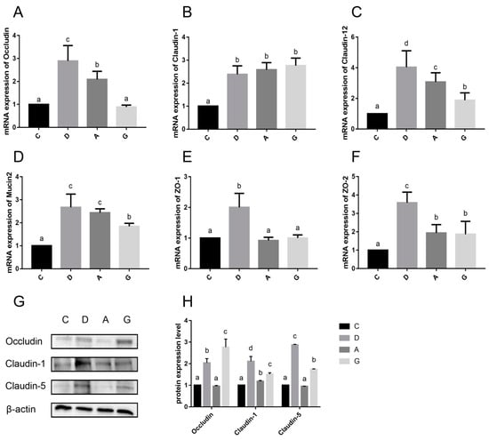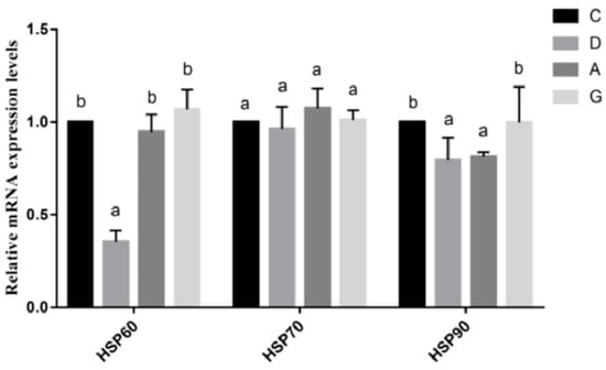 28]. To investigate whether music can alleviate intestinal stress in mice, this experiment examined the expression levels of HSPs’ mRNA in the ileum. The results indicated a significant decrease in the mRNA expression level of HSP60 in the D group compared to other groups. The mRNA level of HSP90 was notably lower in the D group than that of the C group and G group, while the mRNA level of HSP70 did not significantly differ from that of the other groups. These findings align with those of previous studies [