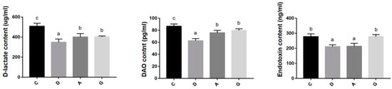 The levels of intestinal permeability index (Endotoxin, DAO, D-lactate) in serum and the levels of immune globulin (IgA, IgG) in ileum tissue were measured with corresponding ELISA kits according to the manufacturer’s instructions (Xinle, Shanghai, China).