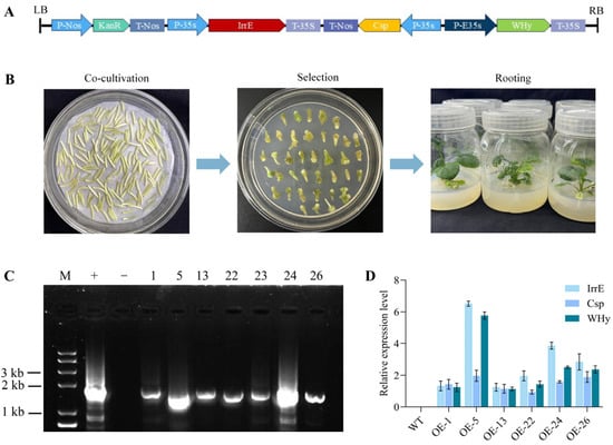 - Wang, J.; Guo, C.; Dai, Q.; Feng, B.; Zuo, K.; Lin, M. Salt Tolerance Conferred by Expression of a Global Regulator IrrE from Deinococcus radiodurans in Rapeseed. Mol. Breed. 2016, 36, 88. [Google Scholar] [CrossRef]