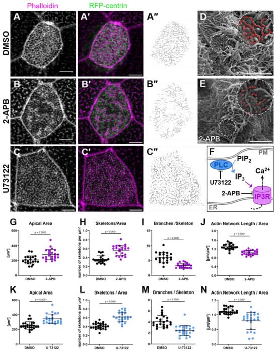 2.3. Inositol Trisphosphate/Calcium Signaling Is Required for Apical Actin Integrity