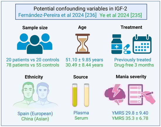 - Kim, Y.K.; Na, K.S.; Hwang, J.A.; Yoon, H.K.; Lee, H.J.; Hahn, S.W.; Lee, B.H.; Jung, H.Y. High insulin-like growth factor-1 in patients with bipolar I disorder: A trait marker? J Affect Disord 2013, 151, 738–743. [Google Scholar] [CrossRef] [PubMed]