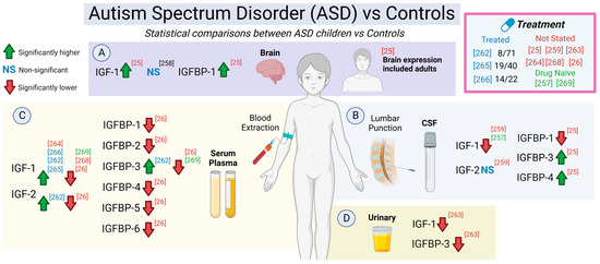 - Shen, J.; Liu, L.; Yang, Y.; Zhou, M.; Xu, S.; Zhang, W.; Zhang, C. Insulin-Like Growth Factor 1 Has the Potential to Be Used as a Diagnostic Tool and Treatment Target for Autism Spectrum Disorders. Cureus 2024, 16, e65393. [Google Scholar] [CrossRef] [PubMed] [PubMed Central]