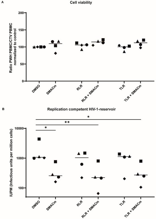 2.4. TLR8 and RLR Agonists Do Not Alter SMACm-Induced Reservoir Reduction
