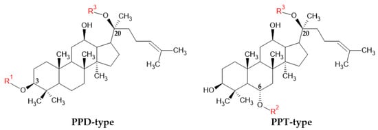 | Ginsenoside | Type | (C-3) R1 | (C-20) R3 |