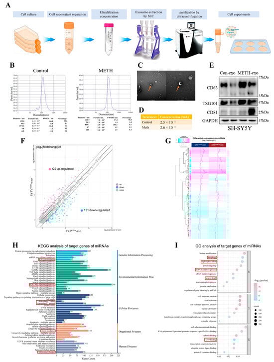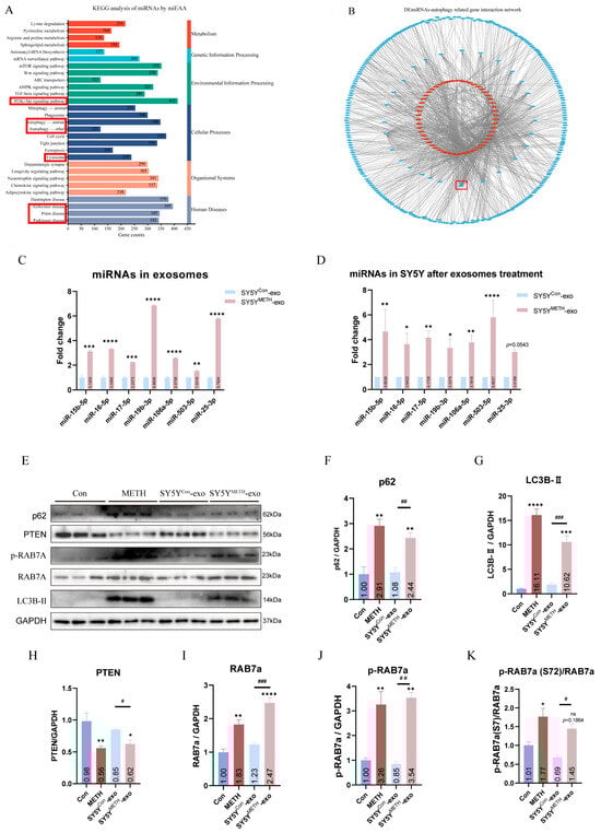2.5. METH Can Induce Neurons to Release Exosomes Containing Differential Express miRNAs (DE-miRNAs) and Lead to a Decrease in the Level of PTEN in Neurons, Thereby Affecting the Phosphorylation Level of Rab7a