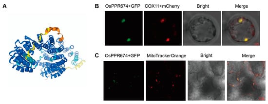 Together, these results primarily demonstrate that the structure of the OsPPR674 protein is conserved and stably localized in mitochondria.