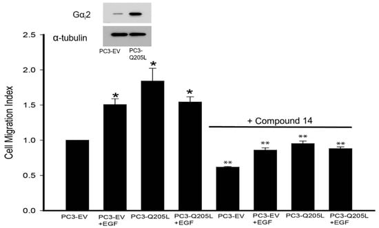 2.2. Gαi2 Inhibitor Blocked the Effects of Gαi2-Q205L on Cell Migration in PC3 Cells