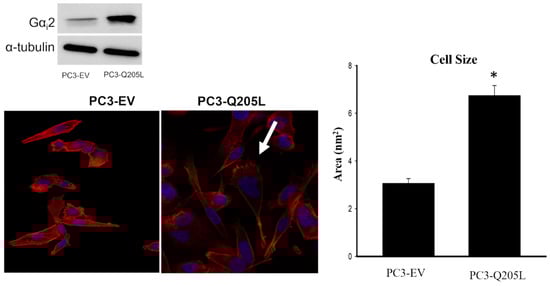 2.4. PC3 Cells Overexpressing Constitutively Active Gαi2 Increase in Cell Size and Lamellipodia Formation
