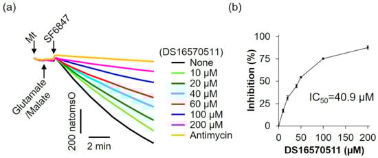 2.3. Effects of DS16570511 on the Activity of the Respiratory Chain Complex