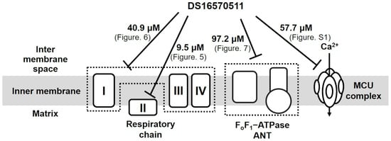 Chicago/Turabian StyleYamada, Akiko, Akira Watanabe, Atsushi Nara, Tsubasa Inokuma, Masatake Asano, Yasuo Shinohara, and Takenori Yamamoto. 2025. "Multiple Inhibitory Mechanisms of DS16570511 Targeting Mitochondrial Calcium Uptake: Insights from Biochemical Analysis of Rat Liver Mitochondria" International Journal of Molecular Sciences 26, no. 6: 2670. https://doi.org/10.3390/ijms26062670