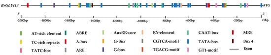 To further investigate the cis-regulatory elements within the promoter sequence, the 2000 bp upstream promoter sequence of the BrGLYI13 gene was retrieved from the genome annotation file. The obtained sequence was then analyzed using the PlantCARE database, and the results were visualized using TBtools 2.154.