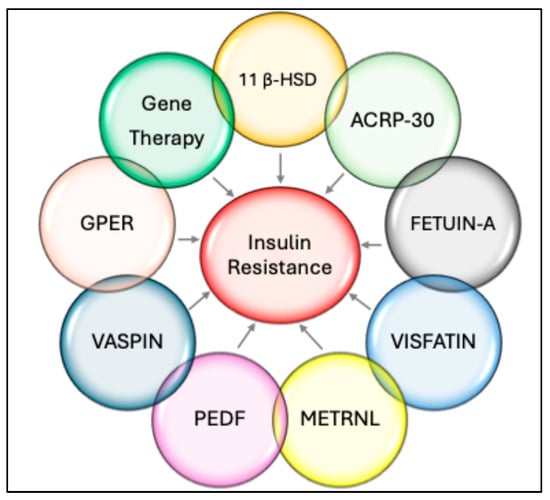 The key hallmark of IR is impaired insulin-mediated glucose disposal by peripheral microvascular endothelium, adipose tissue, and skeletal muscle in response to the metabolic needs of the whole body [,,]. The primary etiological factor that leads to the development of IR is the maladaptation of various intrinsically interconnected physiological processes that together govern whole-body glucose homeostasis [,]. Available evidence suggests that IR and the associated vascular and neuronal dysfunctions are likely to develop in parallel [,,].
