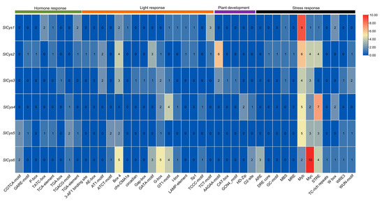 Heat map of cis-acting elements in the promoters of tomato SlCys family genes.