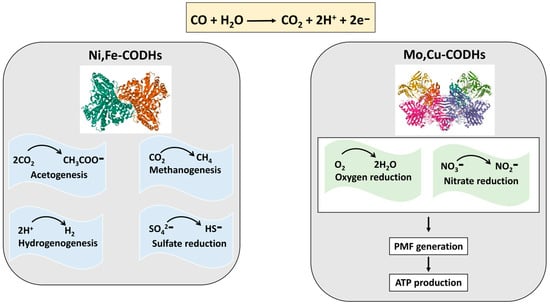 - Fukuyama, Y.; Inoue, M.; Omae, K.; Yoshida, T.; Sako, Y. Anaerobic and hydrogenogenic carbon monoxide-oxidizing prokaryotes: Versatile microbial conversion of a toxic gas into an available energy. Adv. Appl. Microbiol. 2020, 110, 99–148. [Google Scholar] [CrossRef]