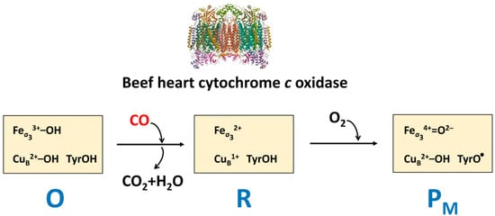 - Tomkova, A.; Cizmar, E.; Jancura, D.; Fabian, M. High stability of the radical at the catalytic center of cytochrome c oxidase. Arch. Biochem. Biophys. 2025, 764, 110271. [Google Scholar] [CrossRef]