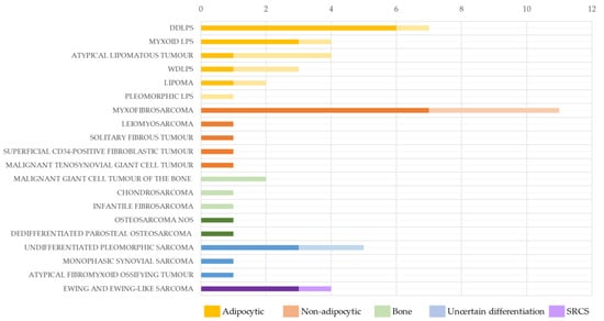 - Gamboa, A.C.; Gronchi, A.; Cardona, K. Soft-Tissue Sarcoma in Adults: An Update on the Current State of Histiotype-Specific Management in an Era of Personalized Medicine. CA Cancer J. Clin. 2020, 70, 200–229. [Google Scholar] [CrossRef]