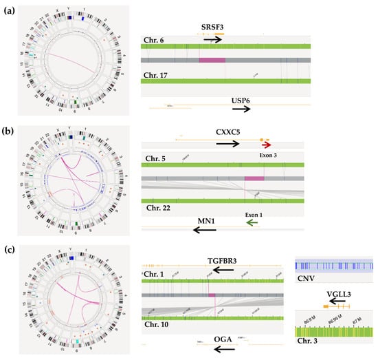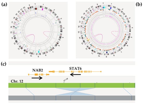 - Anderson, N.D.; de Borja, R.; Young, M.D.; Fuligni, F.; Rosic, A.; Roberts, N.D.; Hajjar, S.; Layeghifard, M.; Novokmet, A.; Kowalski, P.E.; et al. Rearrangement Bursts Generate Canonical Gene Fusions in Bone and Soft Tissue Tumors. Science 2018, 361, eaam8419. [Google Scholar] [CrossRef]