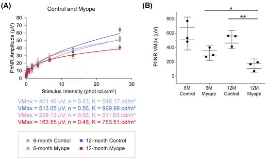 2.4. Dampening of PhNR Amplitude Occurs in Eyes Induced with Myopia for 10 but Not 4 Months