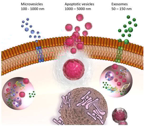 - Yu, L.; Zhu, G.; Zhang, Z.; Yu, Y.; Zeng, L.; Xu, Z.; Weng, J.; Xia, J.; Li, J.; Pathak, J.L. Apoptotic bodies: Bioactive treasure left behind by the dying cells with robust diagnostic and therapeutic application potentials. J. Nanobiotechnol. 2023, 21, 218. [Google Scholar] [CrossRef] [PubMed]