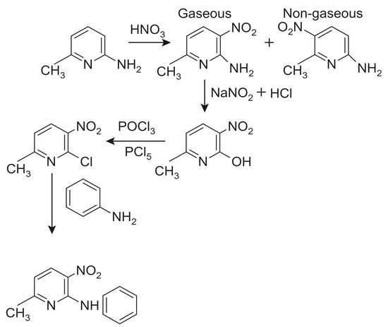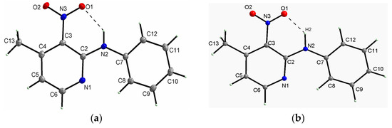 - The specific structure of the studied compounds originates from the amino bridge between the phenyl and pyridine rings, and this conformation is stabilized by the intramolecular medium-strength hydrogen bond of N–H···O type formed by the O-atom of the nitro group and the NH group. The NH group plays an important role as the proton donor in the structural stabilization of the studied compounds in the solid state. Such structure predisposes these derivatives as precursors of antihistamine drugs, which can be used to oppose the activity of histamine receptors in the human body, forming antihistaminic pharmaceutics for allergic disorders. Such drugs contain the pyridine ring as an important part of their structure [68].