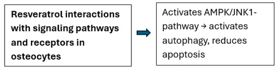 41. Wei, L.; Chai, S.; Yue, C.; Zhang, H.; Li, J.; Qin, N. Resveratrol protects osteocytes against oxidative stress in ovariectomized rats through AMPK/JNK1-dependent pathway leading to promotion of autophagy and inhibition of apoptosis. Cell Death Discov. 2023, 9, 16. [Google Scholar] [CrossRef]