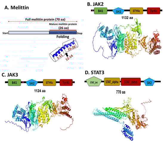2.5. To Elucidate Potential Molecular Targets of Melittin, We Conducted In Silico Protein–Protein Docking Simulations Focusing on Key Regulators of Apoptotic Signaling Pathways, Specifically JAK2, JAK3, and STAT3
