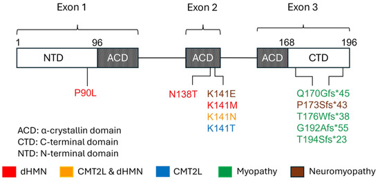 47. Tang, B.; Liu, X.; Zhao, G.; Luo, W.; Xia, K.; Pan, Q.; Cai, F.; Hu, Z.; Zhang, C.; Chen, B.; et al. Mutation analysis of the small heat shock protein 27 gene in chinese patients with Charcot-Marie-Tooth disease. Arch. Neurol. 2005, 62, 1201–1207. [Google Scholar] [CrossRef]