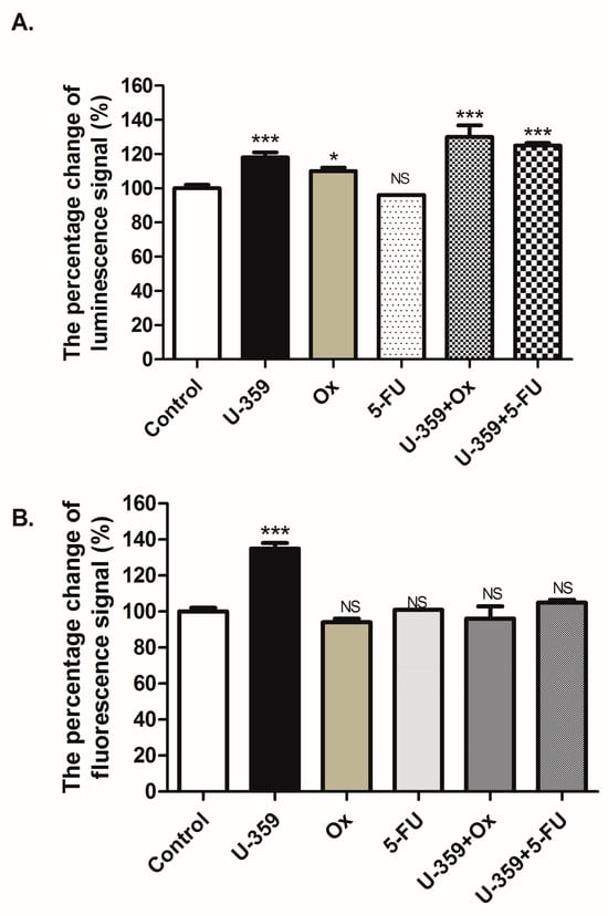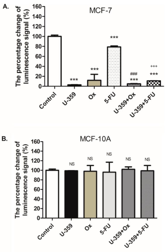 - Provide mechanistic insights into how U-359 enhances apoptosis and suppresses MDR. For this purpose, we studied the influence of U-359, used alone or in combination with 5-FU or Ox, on apoptosis induction and the inhibition of MCF-7 cell proliferation. We also analyzed the potential of U-359 as an ABC transporter inhibitor and NF-κB modulator.