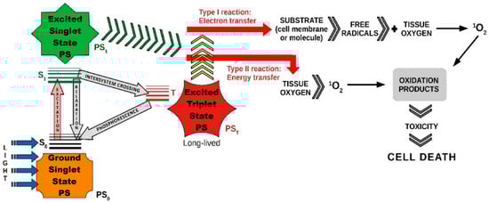 Experimental studies conducted in vitro and in vivo, and clinical studies with different PSs have revealed the fate of target cells and their relationship with apoptosis, necrosis, autophagy, and other nonspecific aspects of cell death. Both the mode of action and the efficacy of PDT are facilitated by the release of ROS and correlate directly with the irradiation energy, dose, irradiation cycle, PS accumulation in the tumor, PS metabolism, and tumor hypoxia [51].
