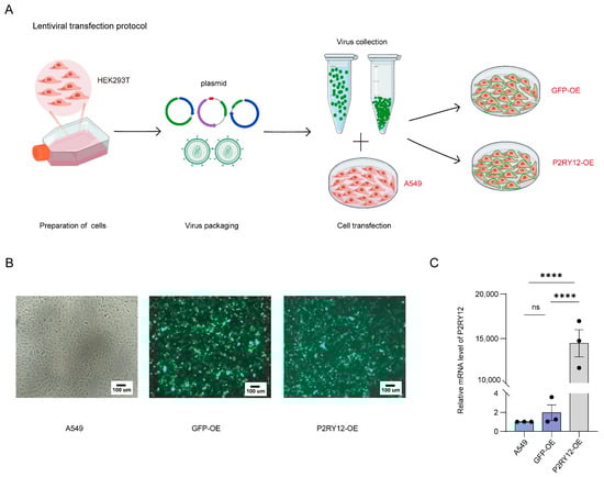 2.1. Establishment of A549, GFP-OE, and P2RY12-OE Cell Lines