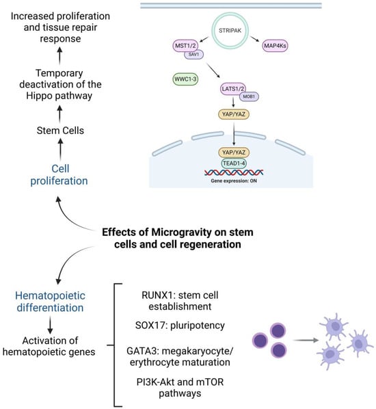 - Blaber, E.A.; Finkelstein, H.; Dvorochkin, N.; Sato, K.Y.; Yousuf, R.; Burns, B.P.; Globus, R.K.; Almeida, E.A. Microgravity Reduces the Differentiation and Regenerative Potential of Embryonic Stem Cells. Stem Cells Dev. 2015, 24, 2605–2621. Available online: https://pubmed.ncbi.nlm.nih.gov/26414276/ (accessed on 16 January 2025).