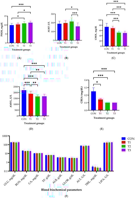 - Jeong, J.Y.; Kim, J.; Kim, M.; Park, S. Efficacy of High-Dose Synbiotic Additives for Deoxynivalenol Detoxification: Effects on Blood Biochemistry, Histology, and Intestinal Microbiome in Weaned Piglets. Biology 2024, 13, 889. [Google Scholar] [CrossRef] [PubMed]