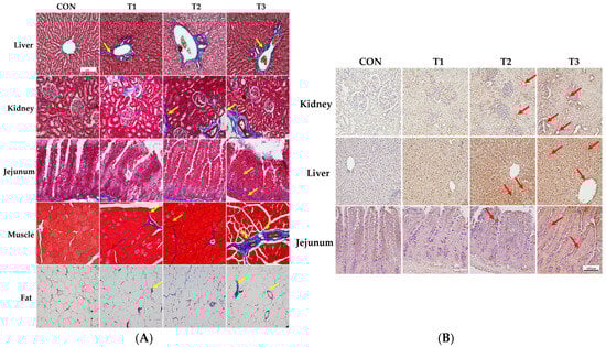 - Wu, L.; Liao, P.; He, L.; Ren, W.; Yin, J.; Duan, J.; Li, T. Growth Performance, Serum Biochemical Profile, Jejunal Morphology, and the Expression of Nutrient Transporter Genes in Deoxynivalenol (DON)-Challenged Growing Pigs. BMC Vet. Res. 2015, 11, 144. [Google Scholar] [CrossRef]