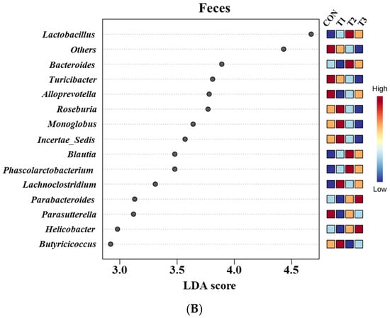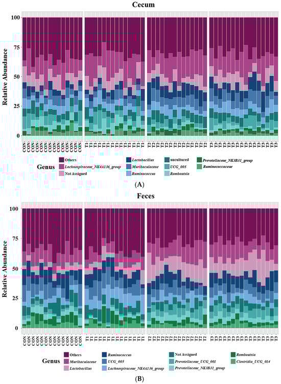2.6. Cecal and Fecal Microbiota at the Genus Level