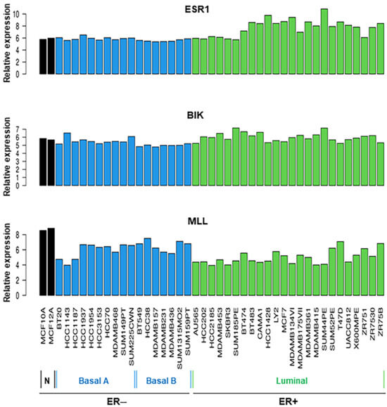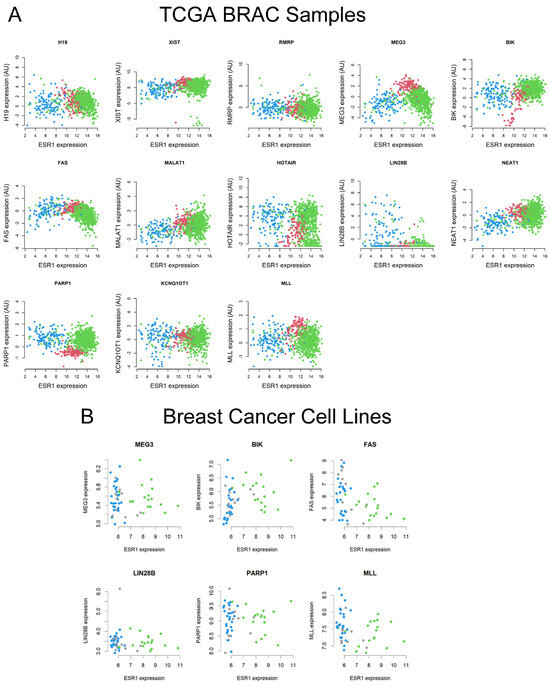 2.2. Analyses of TCGA BRCA and Breast Cell Line RNA-Seq Datasets for a Number of lncRNAs and Their Correlation to ESR1