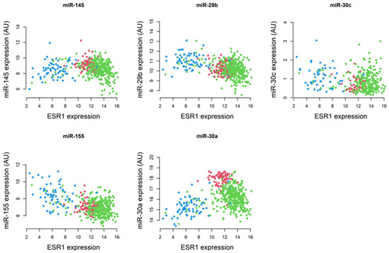 2.3. Correlation of Specific miRNAs with ESR1 and Their Relevance to Breast Pathogenesis