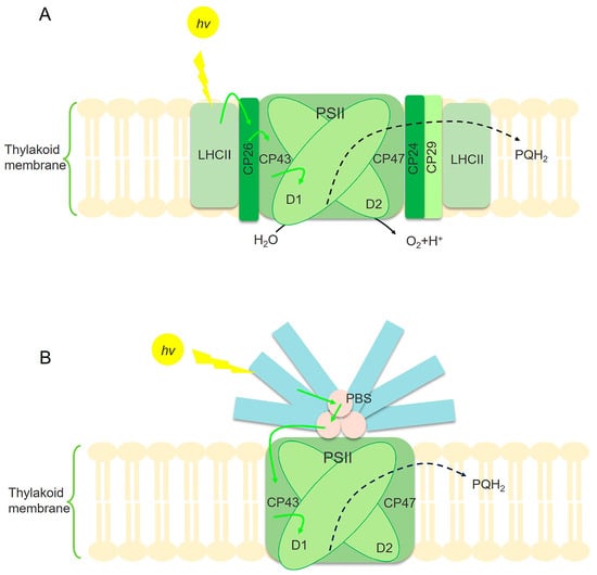 - Nickelsen, J.; Rengstl, B. Photosystem II assembly: From cyanobacteria to plants. Annu. Rev. Plant Biol. 2013, 64, 609–635. [Google Scholar] [PubMed]